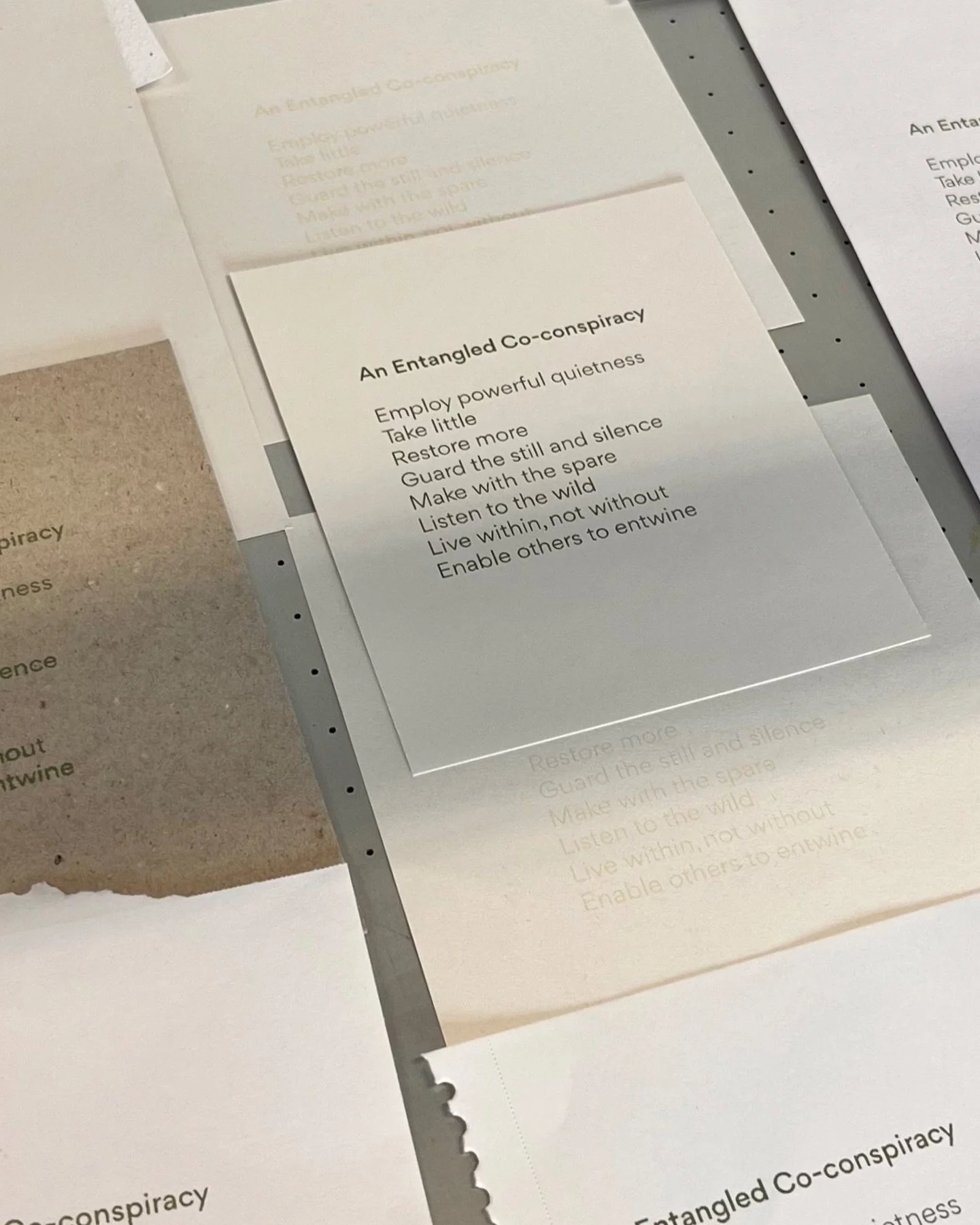 To sustain a regenerative practice my work is guided by a manifesto. In collaboration with the natural world, I conspire to encourage awe and a sense of intimacy and meaning between people and the places we inhabit. Through my work I am seeking out co-conspirators - it is an invitation to closer connect with the wild and with one another. We protect what we love.